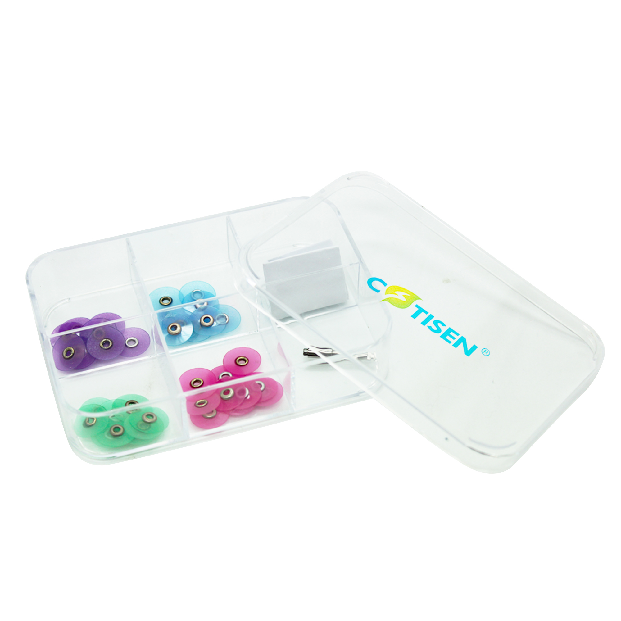 The product is used to polish interproximal surface of anterior teeth, refine labial surface enmel and resi restoration.