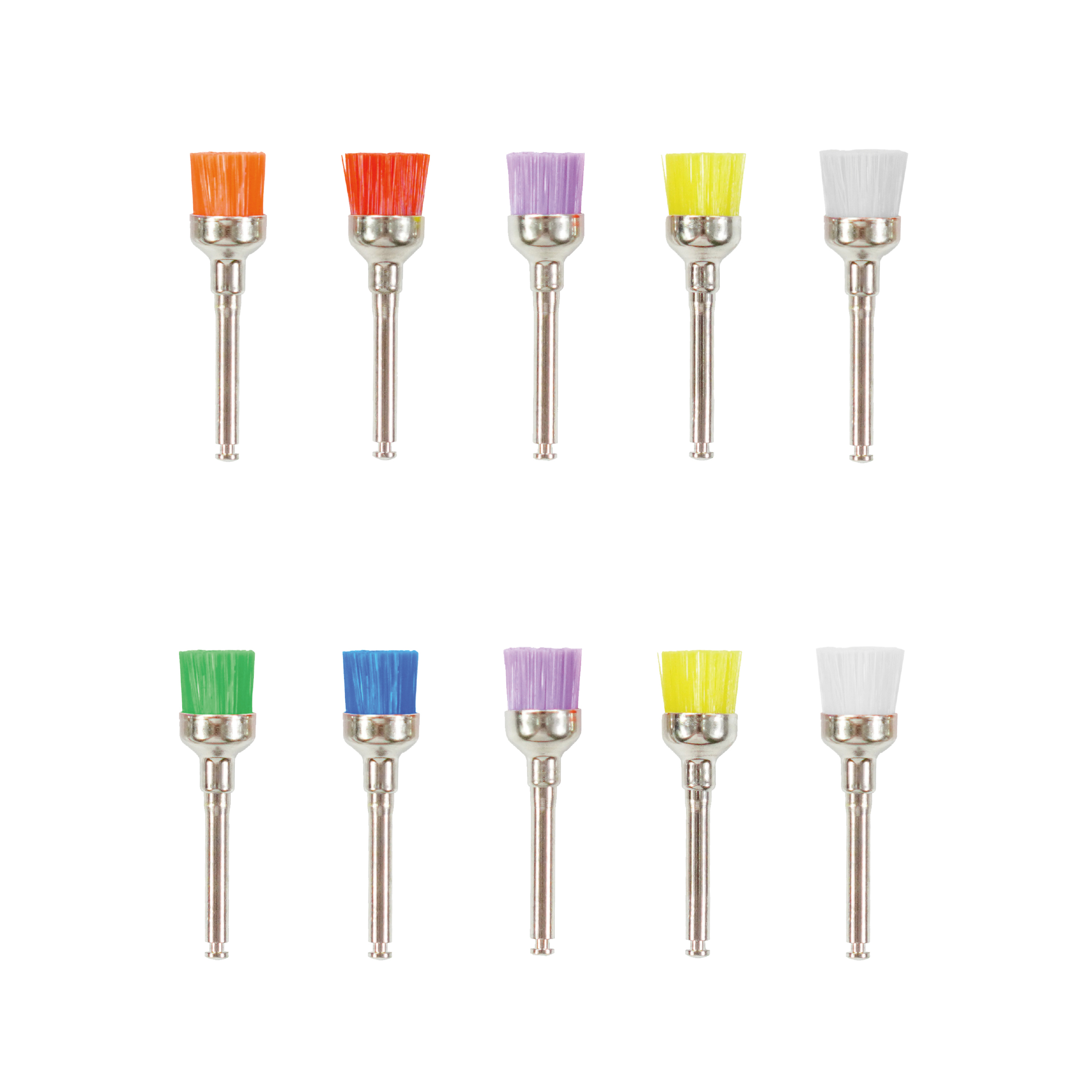 Prophy Brush is composed of a metal handle and a working end.The metal handle is connected with the dental handpiece, the working end is the brush.